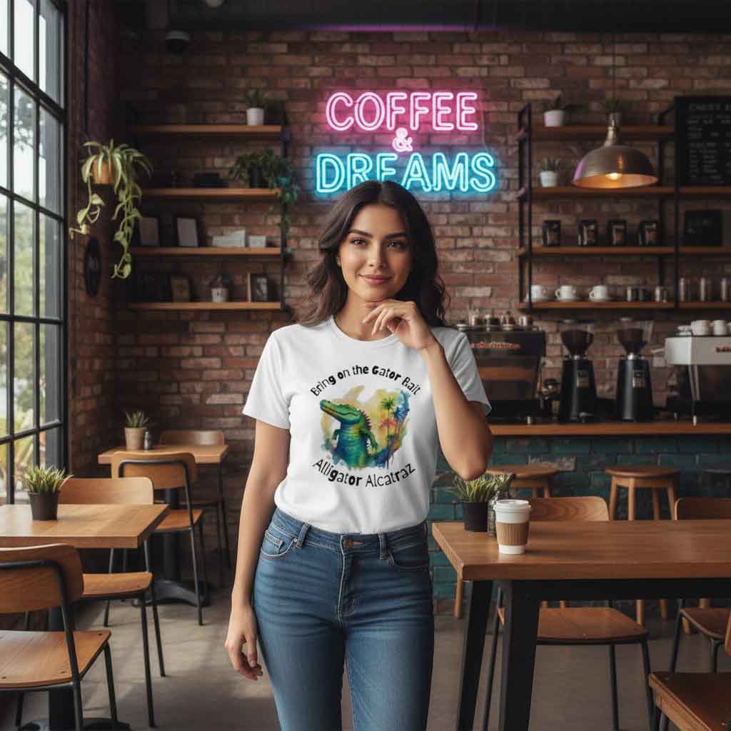- Unique alligator parody graphic with vintage aesthetic